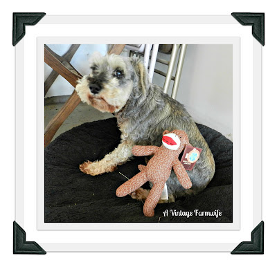 Pearl may be too sophisticated for the sock monkey but she sure looks adorable with it in the picture! (Thanks for the shout out.)