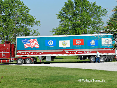 We are very patriotic around here, so I was so tickled when this semi pulled up to the shed delivering seed. Love it!