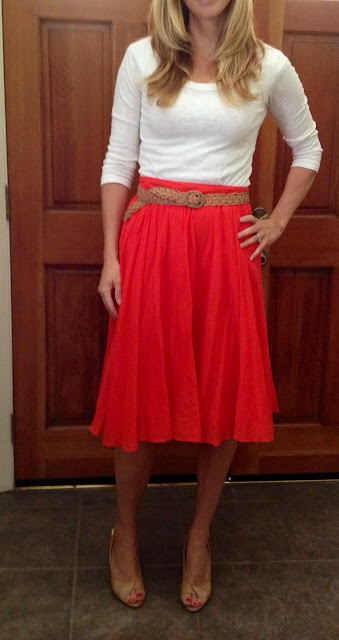 I love the way Modestly Me styled this J Crew skirt. I have this skirt in blue and I haven’t worn it nearly as many times as I told myself I would when I was trying to justify buying it. I’m going to try mine with a simple white tee and an aqua belt. And maybe my new cowboy boots.