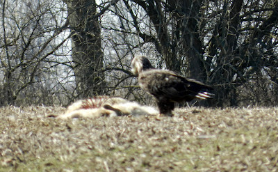 My assumption was that this was a female, but I have been told that it is only young. This picture is very graphic, but that is the way of nature. The birds are feasting on a dead coyote. To me, a dead coyote is a good one. Hope that doesn’t offend anyone, but one afternoon this fall I was chiseling cornstalks, and five of the scariest looking coyotes followed me up and down the field chasing down field mice.